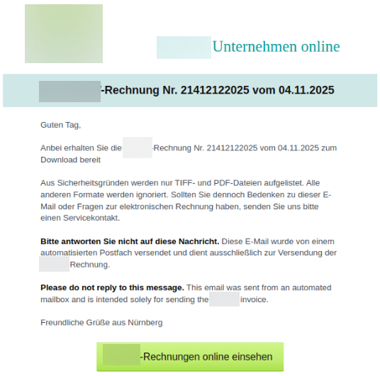 - Display name: “COMPANY_NAME eG” (legitimate company name),
