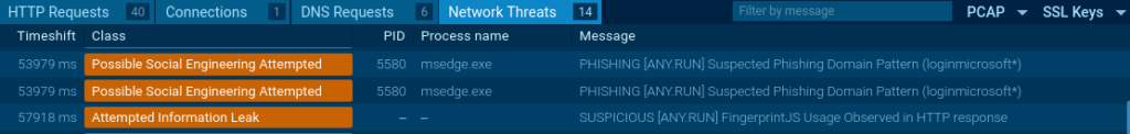 Running the link or file in ANY.RUN’s controlled environment exposes the real behavior of the attack, redirects, anti-bot gates, phishing pages, injected scripts, even the steps that remain hidden from static scans. In most cases, the full flow becomes visible in under 60 seconds