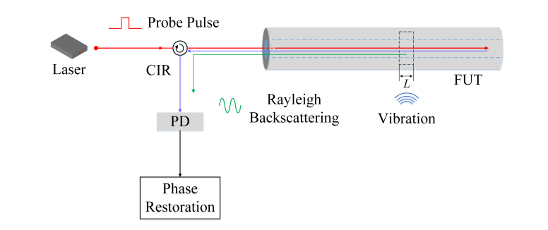 And here’s a rough idea of what the attacker’s equipment would look like. Using special tech, they send optical pulses down the fiber-optic cable and measure the parameters of their transmission. Minor vibrations from footsteps in a room near the cable and nearby conversations trigger an effect known as Rayleigh scattering. This effect, in turn, causes minute deviations in the reflected signal’s parameters, which are then captured on the attacker’s end using a photosensor.