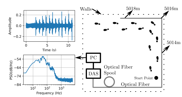 Recording the sound of footsteps in a room through a fiber-optic cable. Source